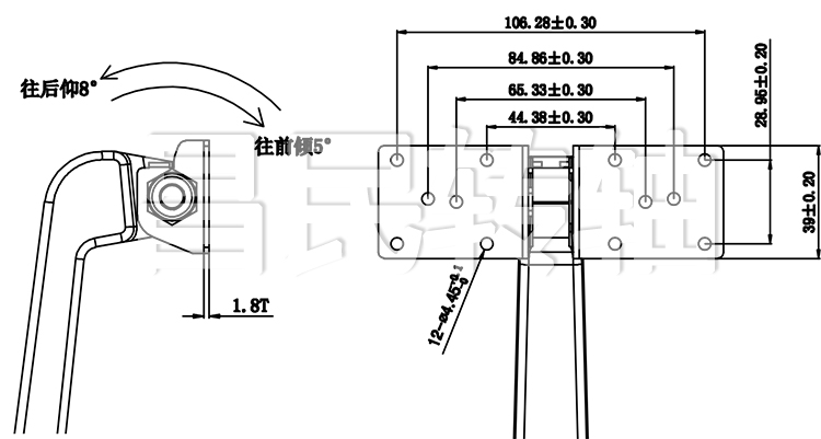 电脑显示屏转轴,转轴和底座一体化,底座使用锌合金压铸件,表面镀锘,外观精美大方,昌民转轴可整体提供底座转轴方案。